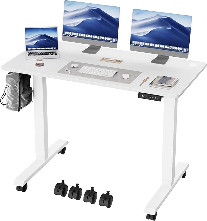 Electric Standing Desk 48 Inch, Ergonomic Height Adjustable Table with T-Shaped Metal Bracket Modern Computer Workstations for Home Office, White, 48 x 24 Inch