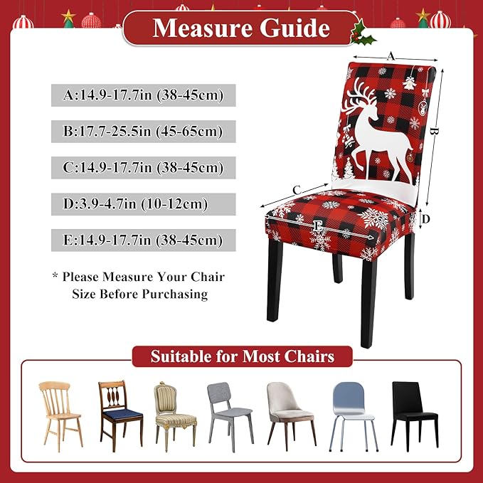 About This Durable Stretch Fabric: Christmas chair cover is made of premium polyester and spandex, which is smooth and comfy,...