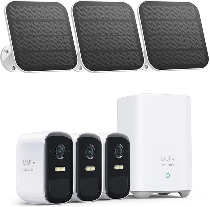 eufy Security, eufyCam 2C 3-Cam Kit with Solar Panel 2W, Security Camera Wireless Outdoor, Home Security System, HomeKit Compatibility, 1080p HD, IP67, Night Vision, Motion Only Alert, No Monthly Fee