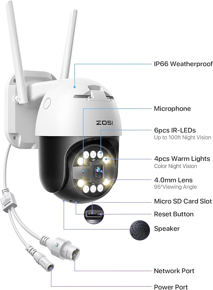 About This [3K Super HD and Color Night Vision] ZOSI WiFi security camera get sharp and crisp images day or...