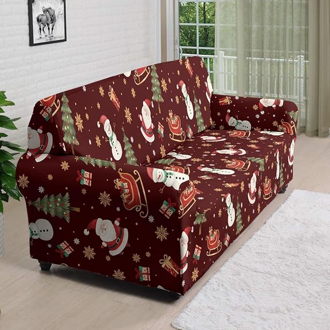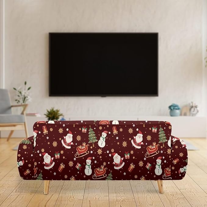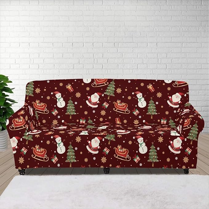 FKELYI Red Christmas Sofa Couch Cover for Indoor Non-Slip Furniture Protector Easy Going Stretch Sofa Slipcover Washable Sofa Slipcovers XL