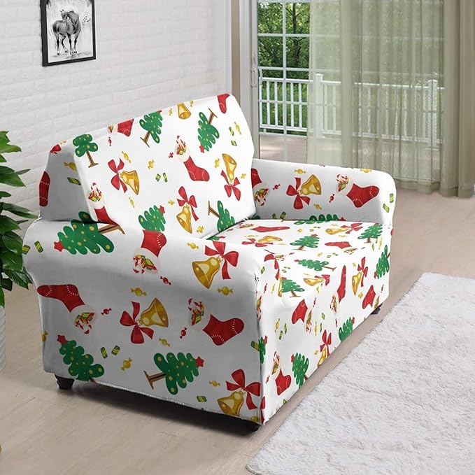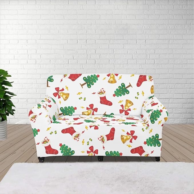 FKELYI Christmas Tree Easy Going Stretch Sofa Slipcover Washable Sofa Couch Cover Comfortable Furniture Protector with Elastic Bottom M
