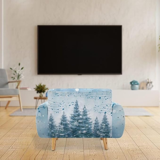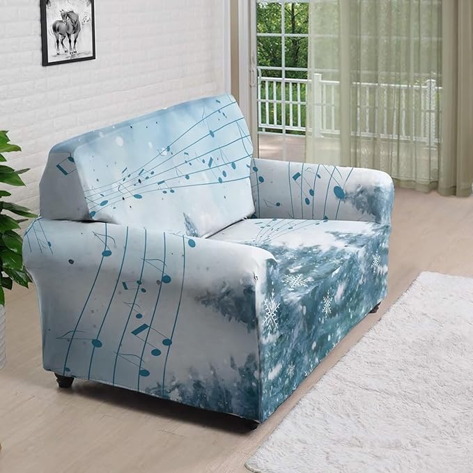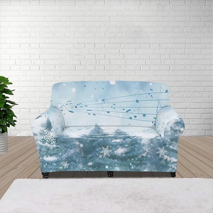 FKELYI Blue Christmas Tree Easy Going Stretch Sofa Slipcover Snow Sofa Couch Cover with Elastic Bottom Stretch Sofa Slipcovers M