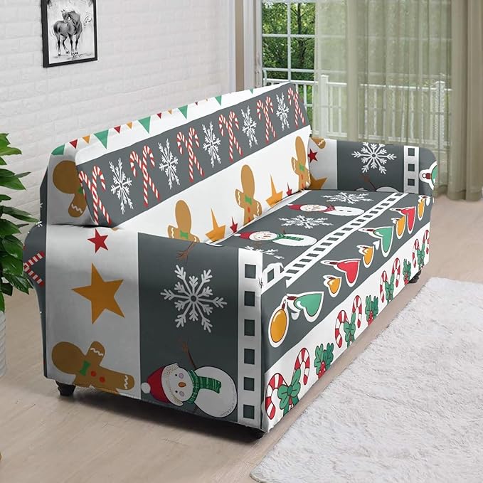 FKELYI Christmas Sofa Furniture Protector for Indoor Easy Going Stretch Sofa Slipcover Non-Slip Sofa Slicpovers Washable Sofa Couch Cover XL
