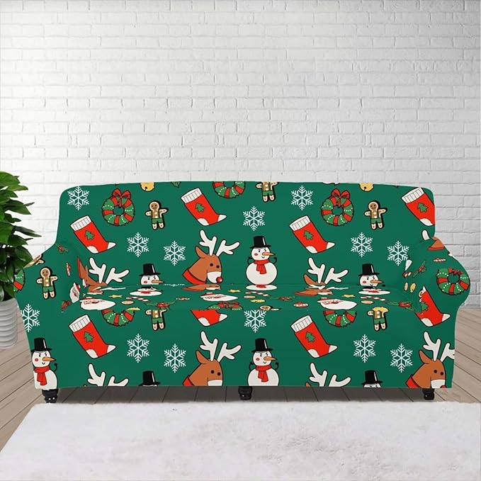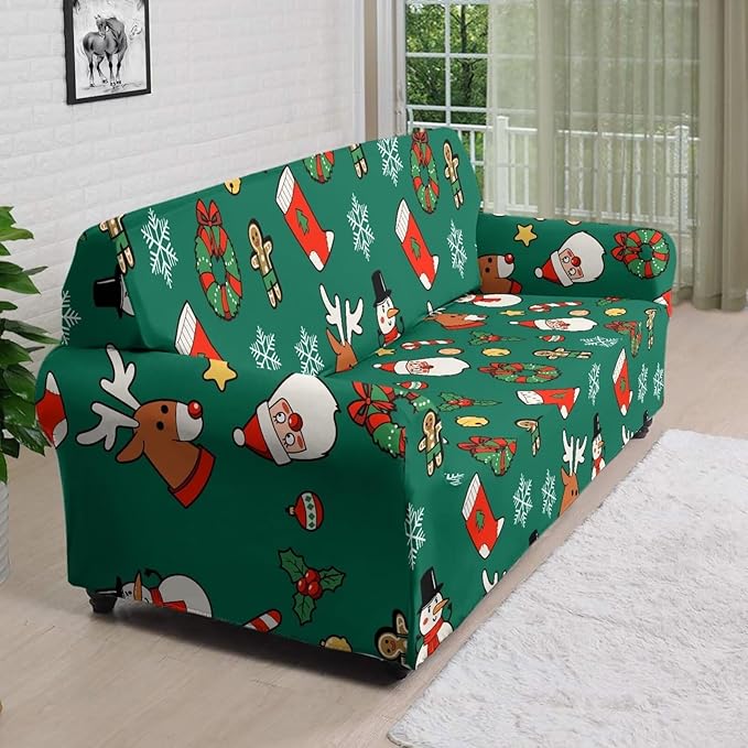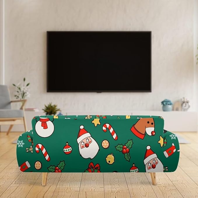 FKELYI Christmas Decorations Green Sofa Slipcover Santa Claus Stretch Sofa Couch Cover for Indoor Washable Furniture Protector with Elastic Bottom XL