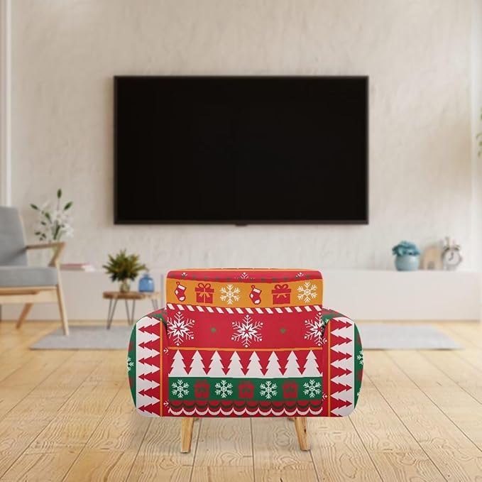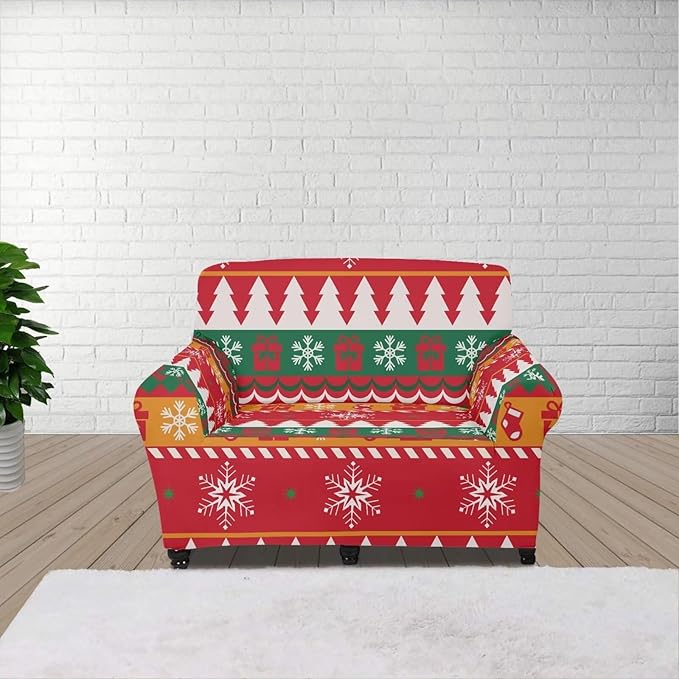 FKELYI Red Christmas Sofa Furniture Protector Easy Going Stretch Sofa Slipcover Comfortable Sofa Couch Cover with Elastic Bottom S