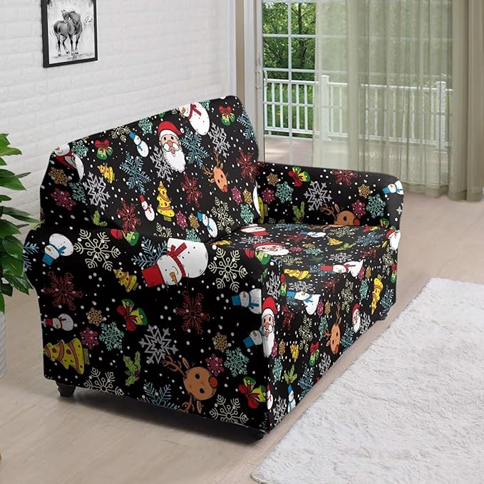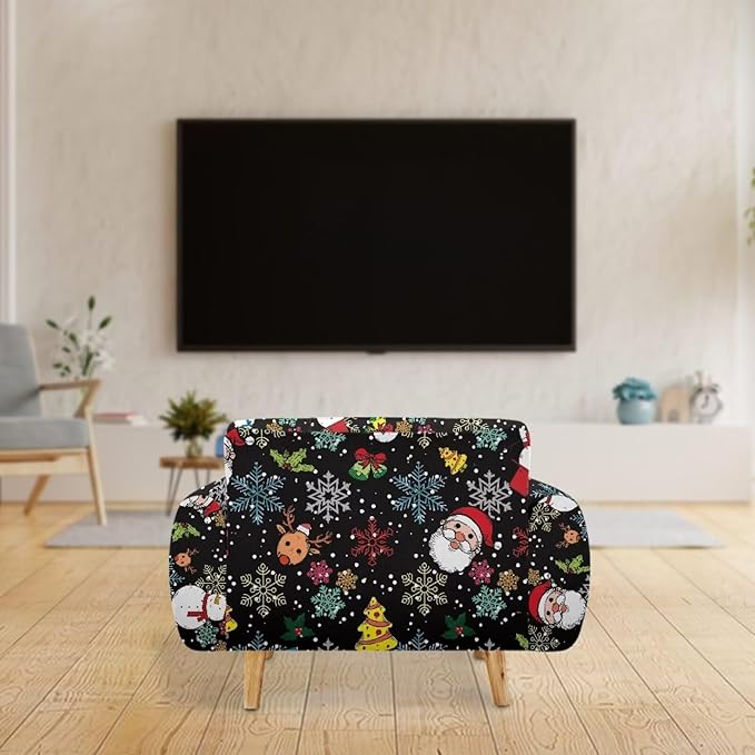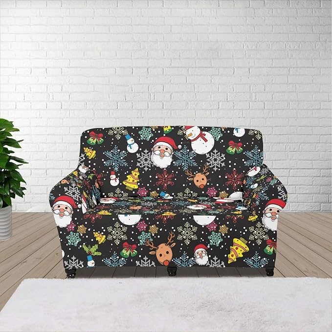 FKELYI Christmas Sofa Slipcover Santa Claus Furniture Protector Washable Easy Going Stretch Sofa Slipcover with Elastic Bottom M