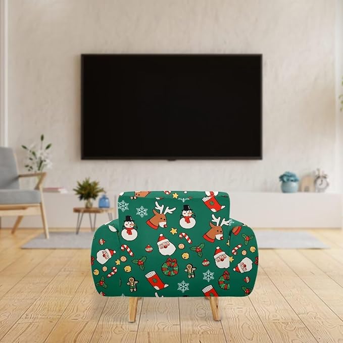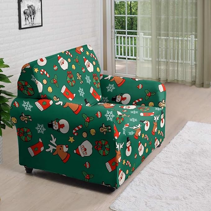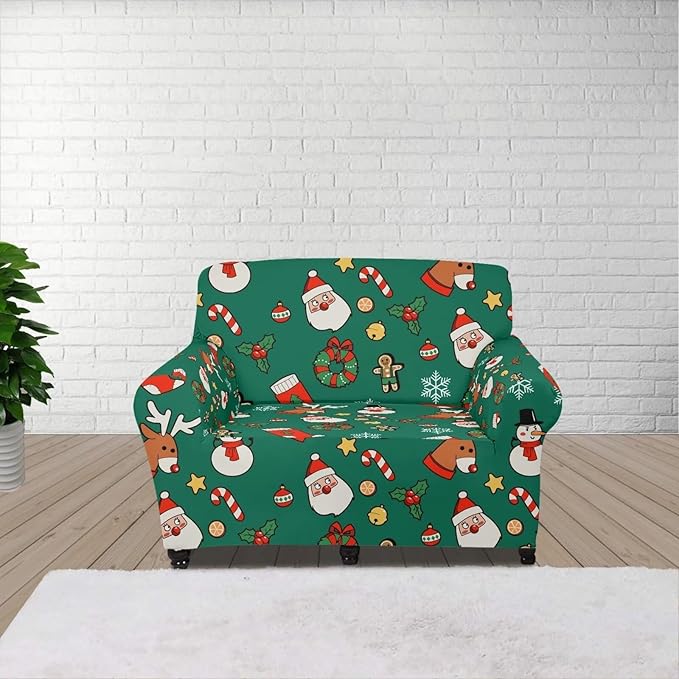 FKELYI Christmas Decorations Green Sofa Slipcover Santa Claus Stretch Sofa Couch Cover for Indoor Washable Furniture Protector with Elastic Bottom S