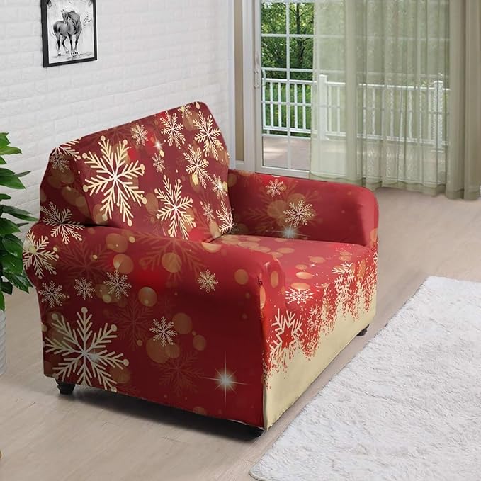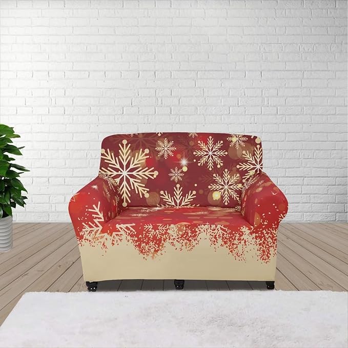 FKELYI Christmas Snow Sofa Slipcover Stretch Sofa Couch Cover for Living Room Non-Slip Furniture Protector Washable Sofa Slipcovers S