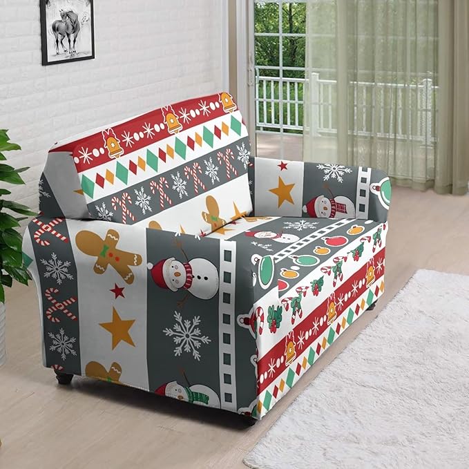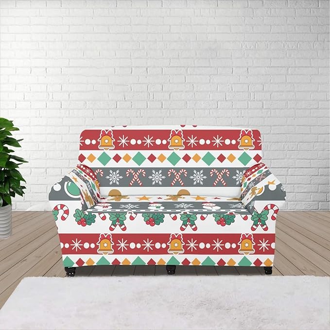FKELYI Christmas Sofa Furniture Protector for Indoor Easy Going Stretch Sofa Slipcover Non-Slip Sofa Slicpovers Washable Sofa Couch Cover M