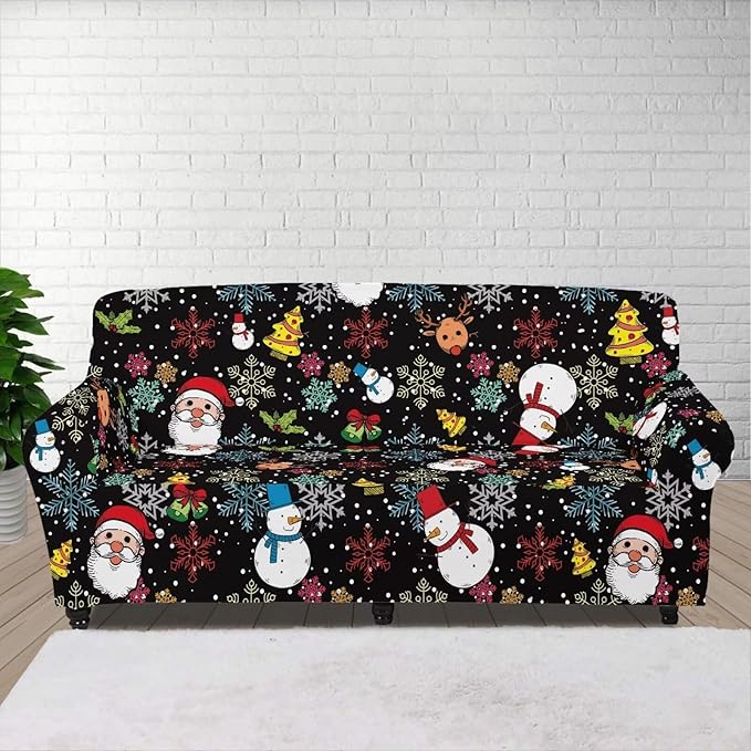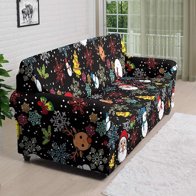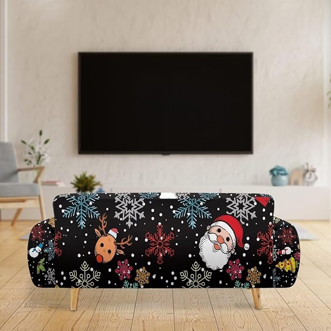FKELYI Christmas Sofa Slipcover Santa Claus Furniture Protector Washable Easy Going Stretch Sofa Slipcover with Elastic Bottom XL