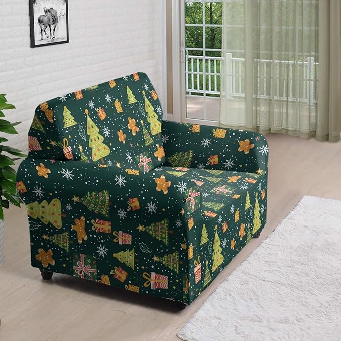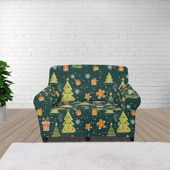 FKELYI Christmas Tree Sofa Couch Cover Comfortable Furniture Protector with Elastic Bottom Stretch Sofa Slipcover for Living Room S