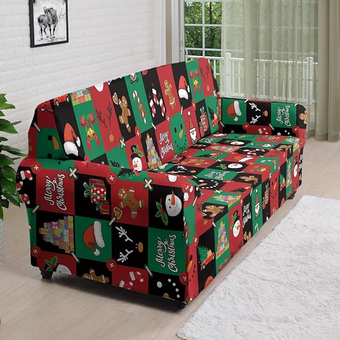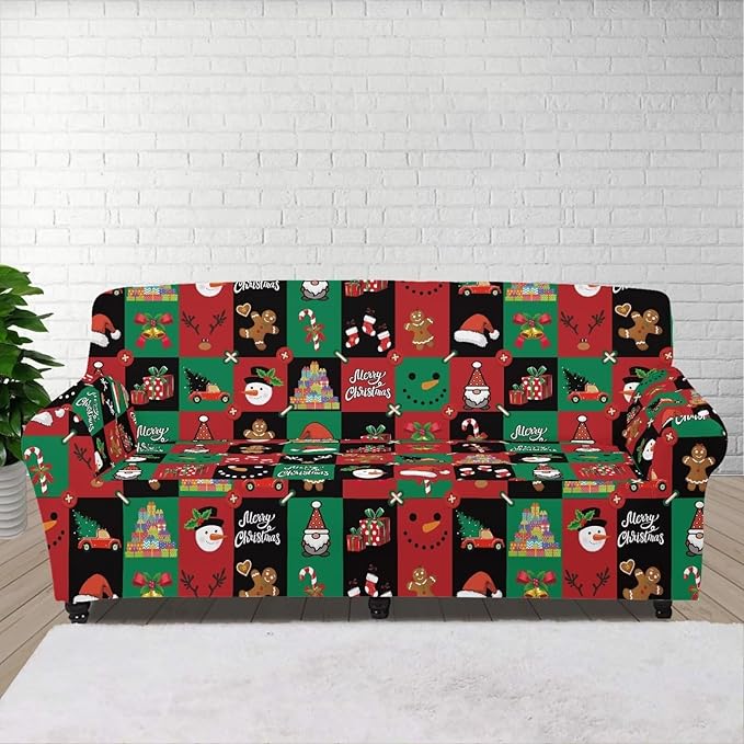 FKELYI Cute Christmas Furniture Protector Easy Going Stretch Sofa Slipcover Non-Slip Sofa Couch Cover Washable Sofa Slipcovers XL