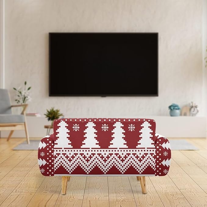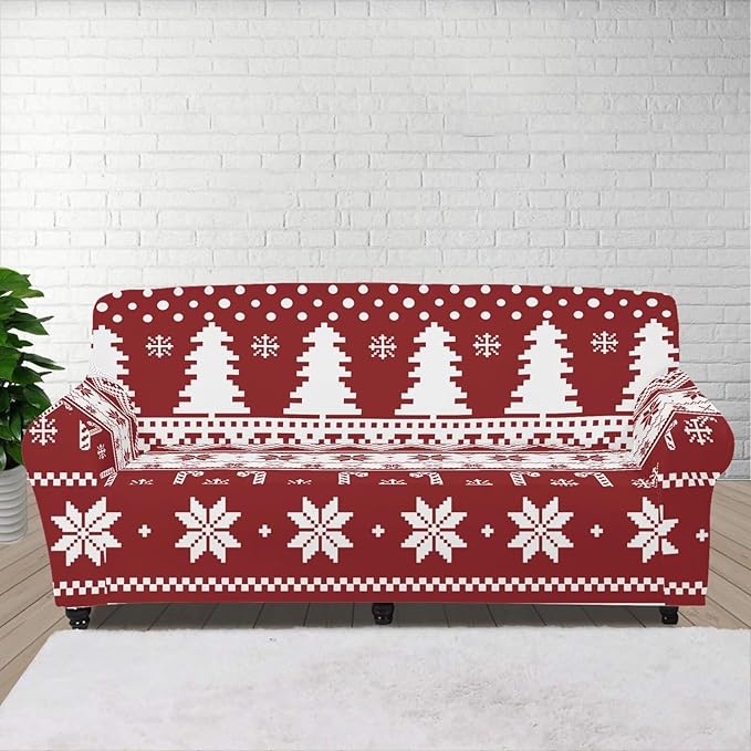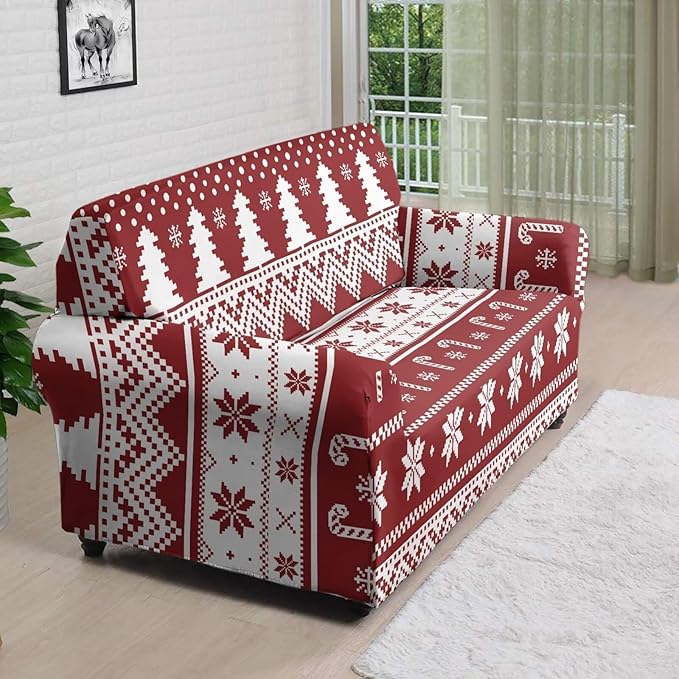 FKELYI Boho Christmas Easy Going Stretch Sofa Slipcover Washable Sofa Couch Cover Comfortable Furniture Protector with Elastic Bottom L