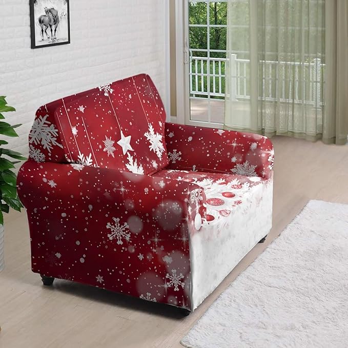FKELYI Christmas Tree Sofa Furniture Protector Easy Going Stretch Sofa Slipcover Non-Slip Sofa Couch Cover Washable Sofa Slipcovers S
