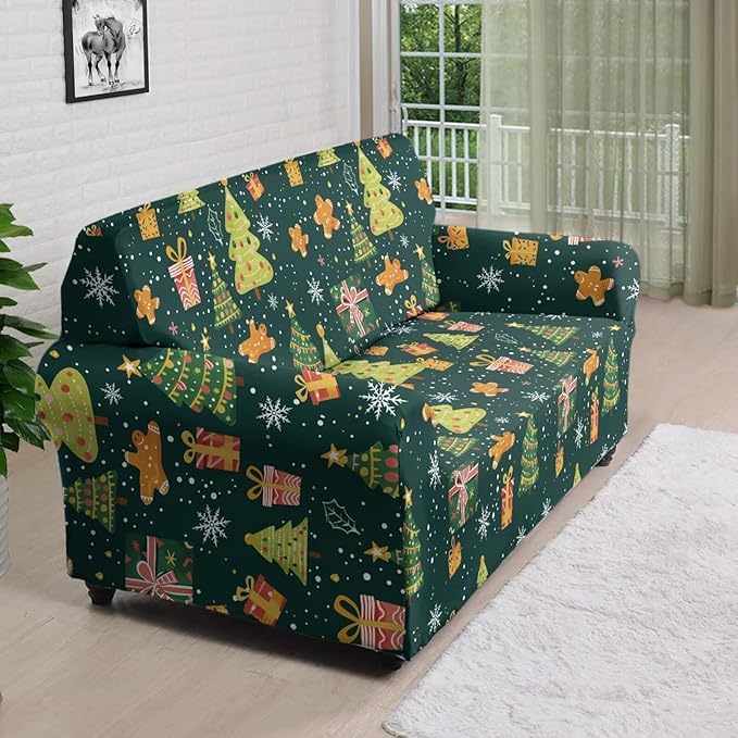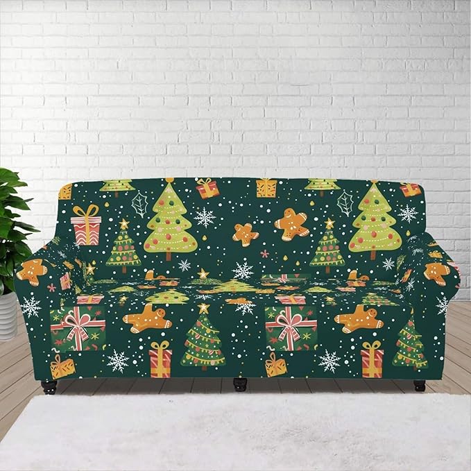 FKELYI Christmas Tree Sofa Couch Cover Comfortable Furniture Protector with Elastic Bottom Stretch Sofa Slipcover for Living Room L