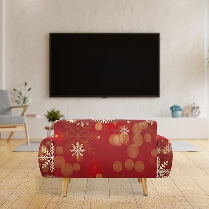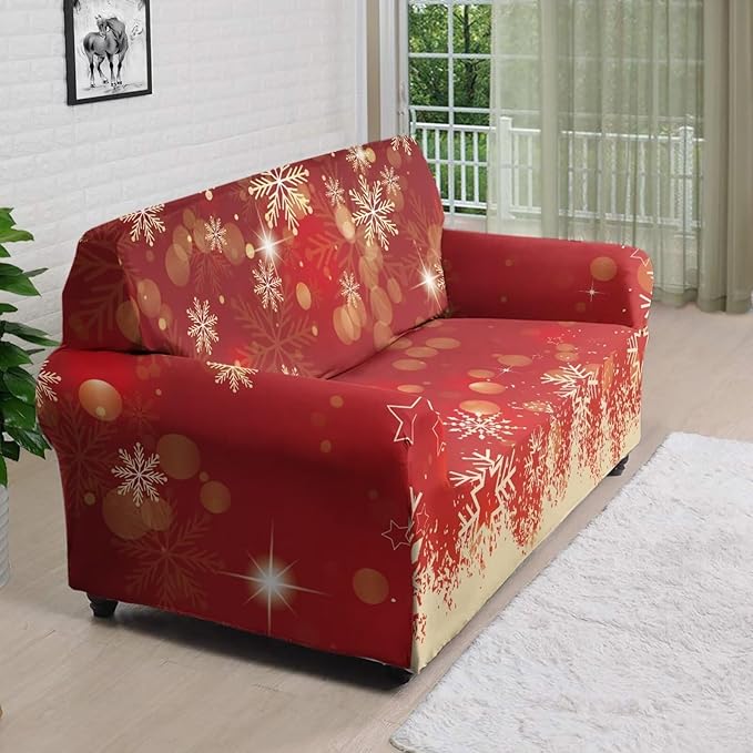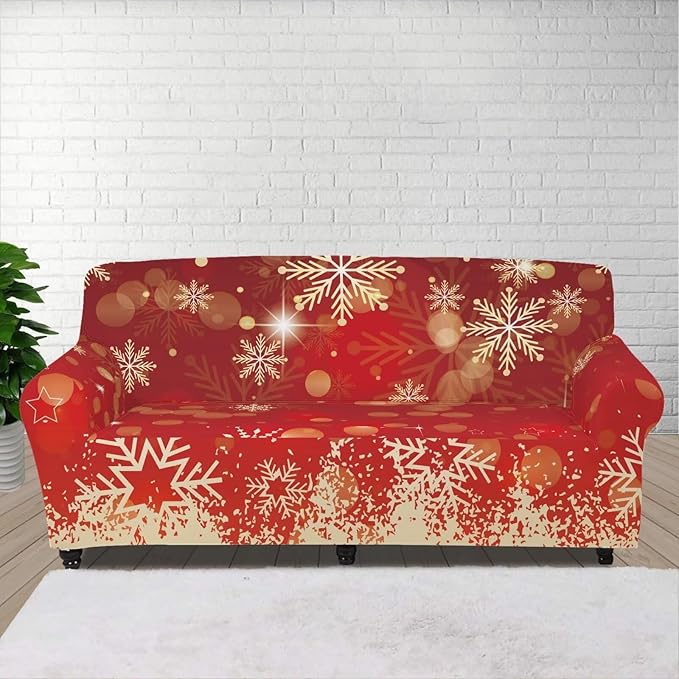 FKELYI Christmas Snow Sofa Slipcover Stretch Sofa Couch Cover for Living Room Non-Slip Furniture Protector Washable Sofa Slipcovers L