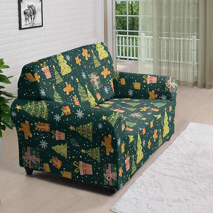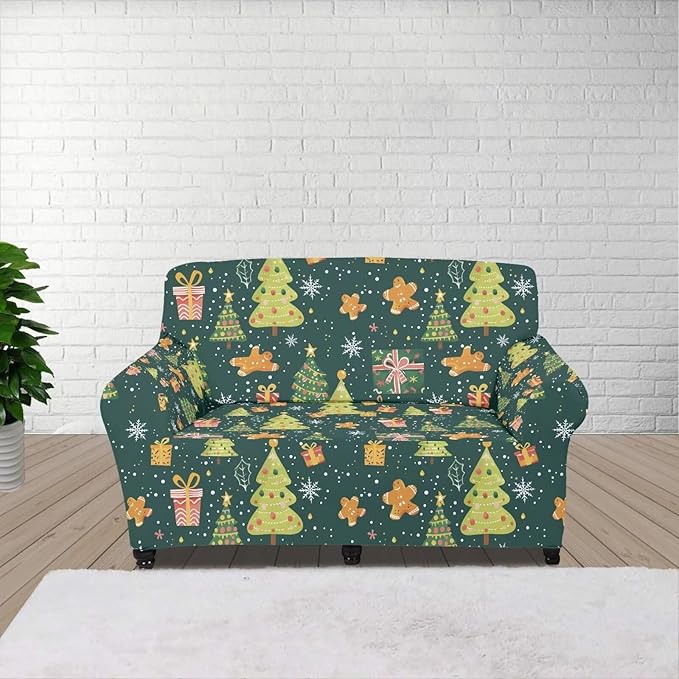 FKELYI Christmas Tree Sofa Couch Cover Comfortable Furniture Protector with Elastic Bottom Stretch Sofa Slipcover for Living Room M