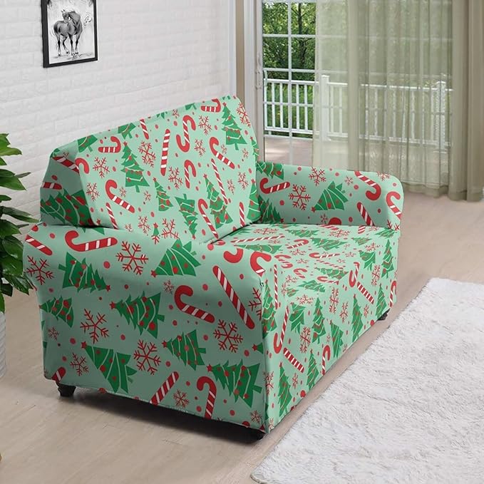 FKELYI Green Christmas Tree Sofa Slipcover Comfortable Sofa Couch Cover with Elastic Bottom Stretch Furniture Protector for Indoor M