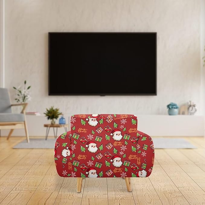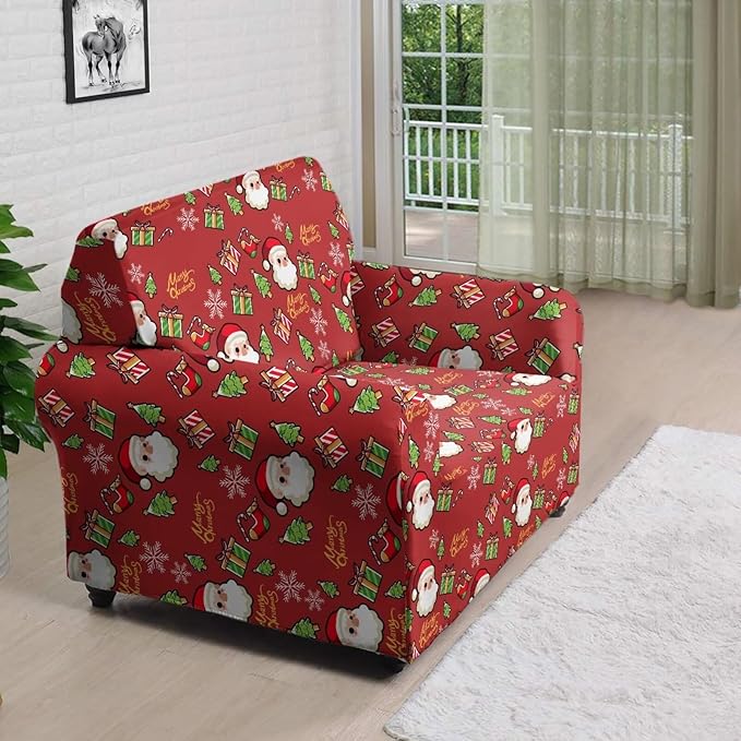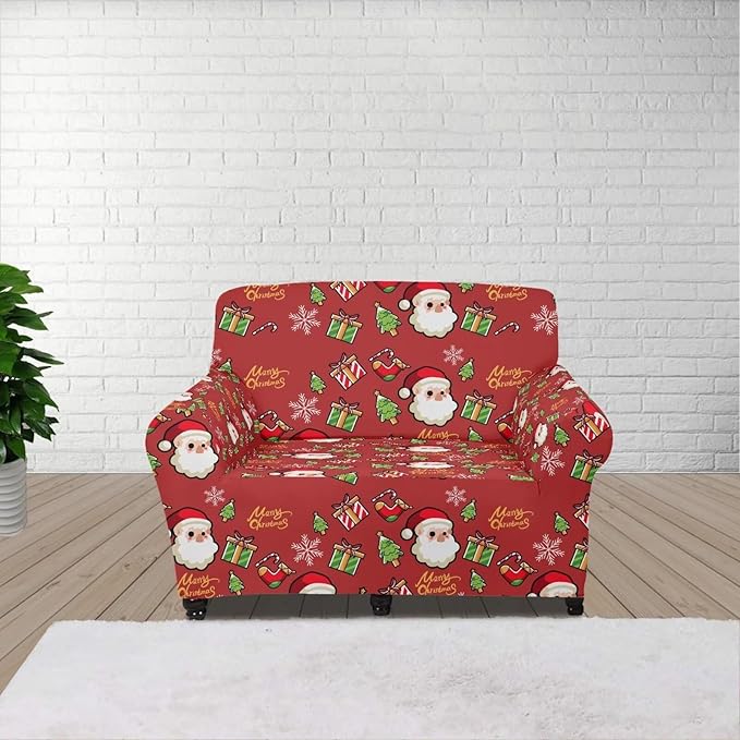 FKELYI Christmas Decor Red Sofa Slipcover for Living Room Santa Claus Sofa Couch Cover with Elastic Bottom Non-Slip Furniture Protector S