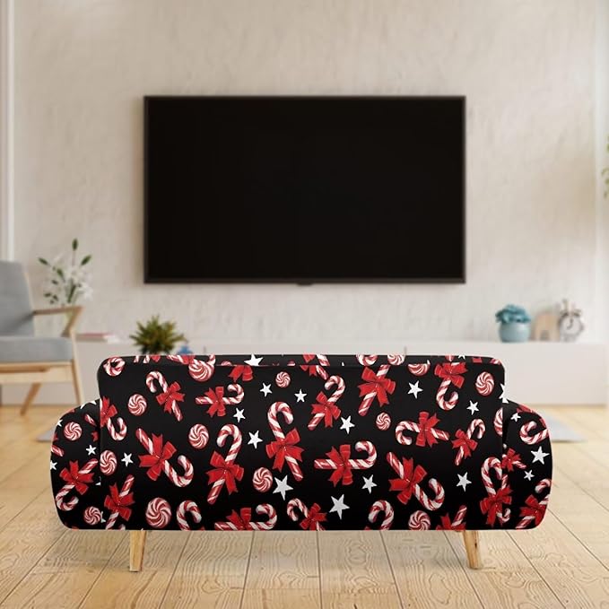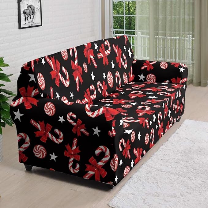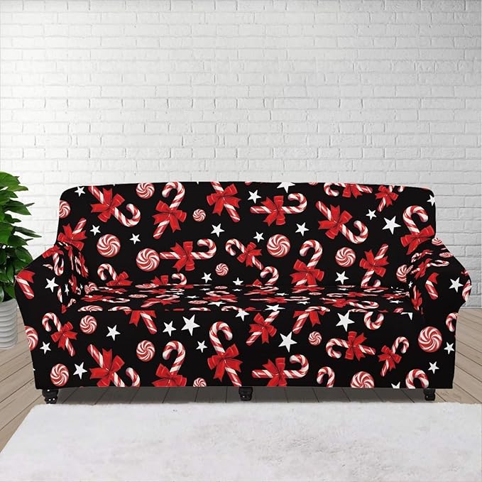 FKELYI Christmas Easy Going Stretch Sofa Slipcover Candy Cane Sofa Couch Cover Non-Slip Sofa Slipcovers Washable Furniture Protector XL