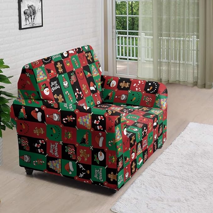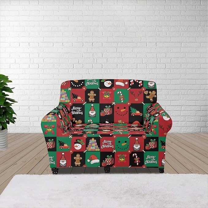 FKELYI Cute Christmas Furniture Protector Easy Going Stretch Sofa Slipcover Non-Slip Sofa Couch Cover Washable Sofa Slipcovers S