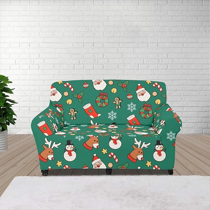 FKELYI Christmas Decorations Green Sofa Slipcover Santa Claus Stretch Sofa Couch Cover for Indoor Washable Furniture Protector with Elastic Bottom M