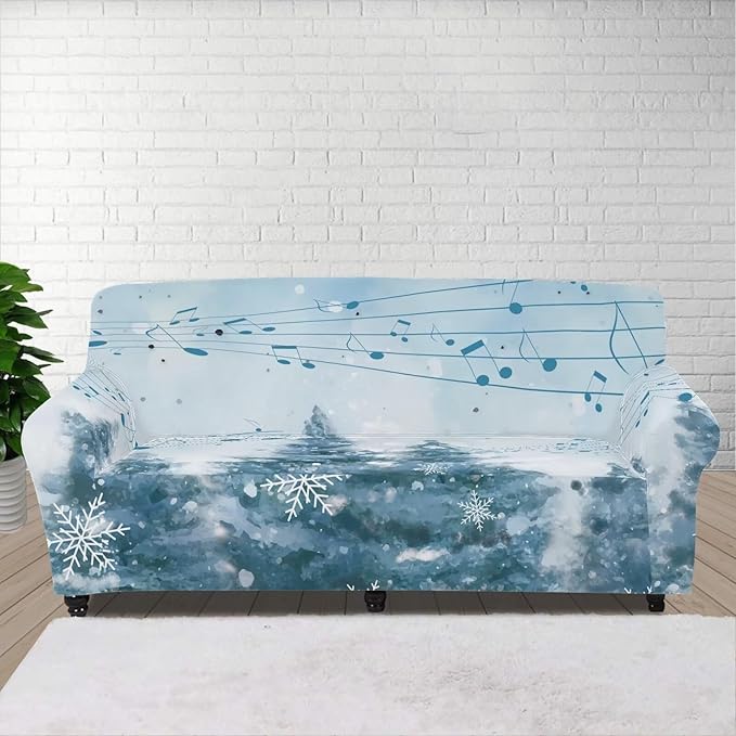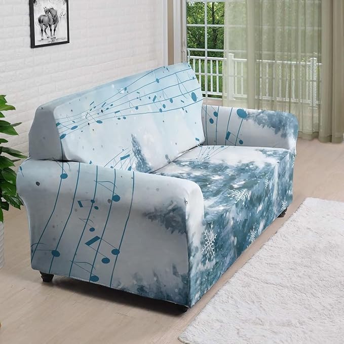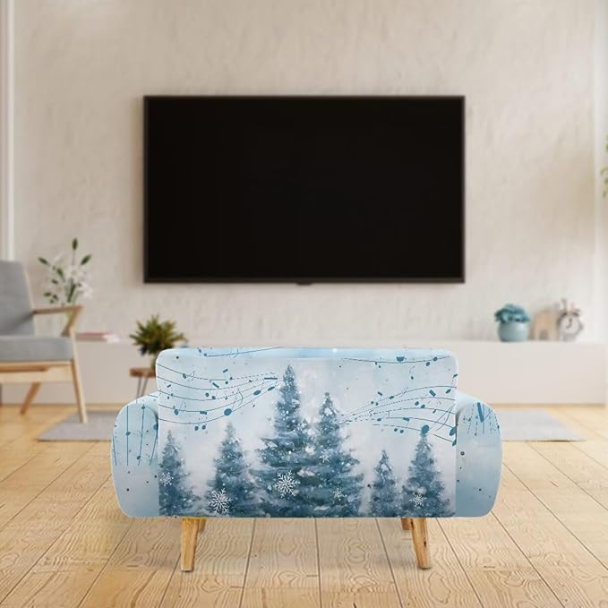 FKELYI Blue Christmas Tree Easy Going Stretch Sofa Slipcover Snow Sofa Couch Cover with Elastic Bottom Stretch Sofa Slipcovers L