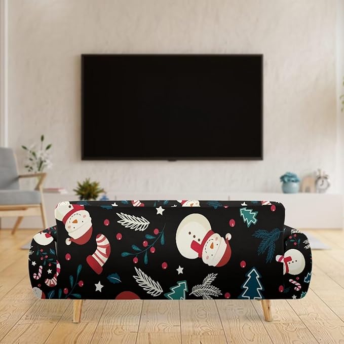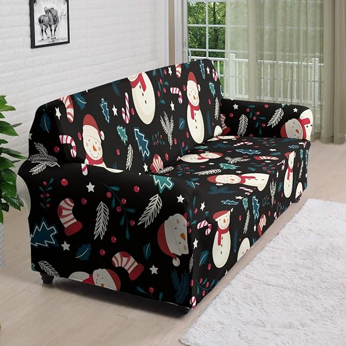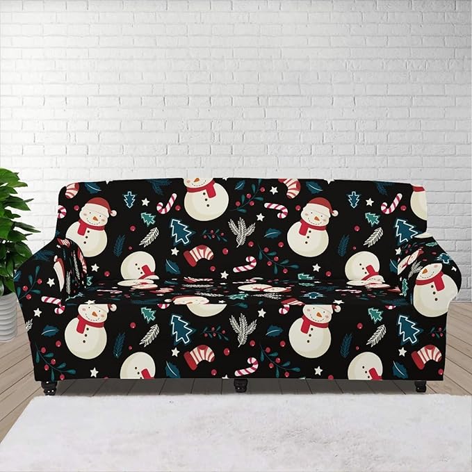 FKELYI Christmas Decor Sofa Couch Cover Cute Snowman Furniture Protector Easy Going Stretch Sofa Slipcover for Indoor Washable Sofa Slipcovers XL