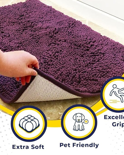 Muddy Mat® Original Dog Door Mat for Muddy Paws, Super Absorbent Microfiber, Non-Slip Washable Pet Rug, Quick Dry Chenille Entryway Carpet, Machine Washable Indoor Outdoor mat, Dark Purple 48"x72"