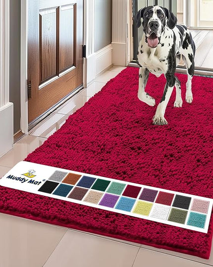 Muddy Mat® Original Dog Door Mat for Muddy Paws, Super Absorbent Microfiber, Non-Slip Washable Pet Rug, Quick Dry Chenille Entryway Carpet, Machine Washable Indoor Outdoor mat, Maroon 35"x60"