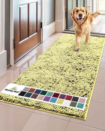 Muddy Mat® Original Dog Door Mat for Muddy Paws, Super Absorbent Microfiber, Non-Slip Washable Pet Rug, Quick Dry Chenille Entryway Carpet, Machine Washable Indoor Outdoor mat, Yellow 24"x60"