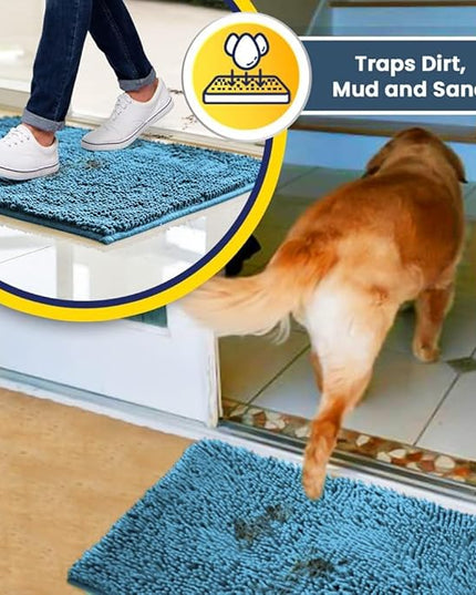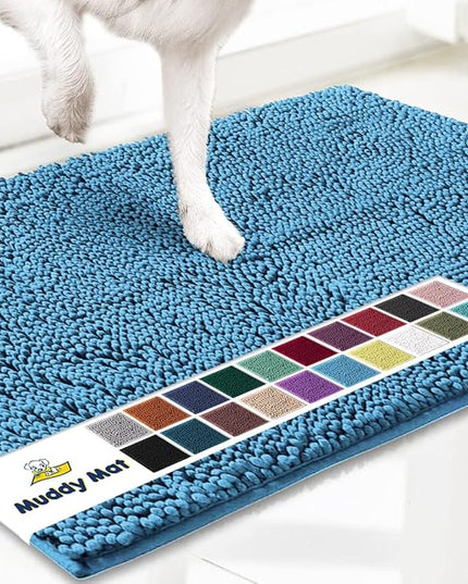 Muddy Mat® Original Dog Door Mat for Muddy Paws, Super Absorbent Microfiber, Non-Slip Washable Pet Rug, Quick Dry Chenille Entryway Carpet, Machine Washable Indoor Outdoor mat, Sky Blue 48"x72"