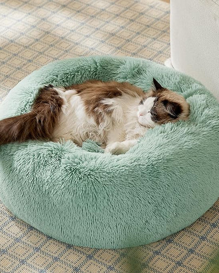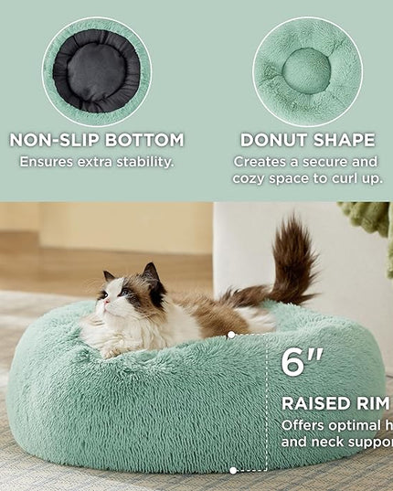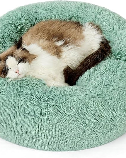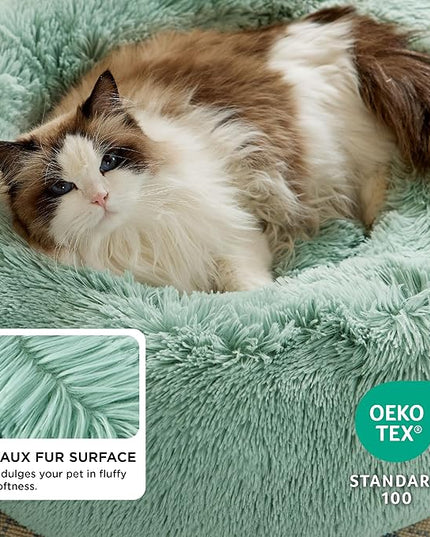 Bedsure Calming Cat Beds for Indoor Cats - Small Cat Bed Washable 20 inches, Anti-Slip Round Fluffy Plush Faux Fur Pet Bed, Fits up to 15 lbs Pets, Garden Green
