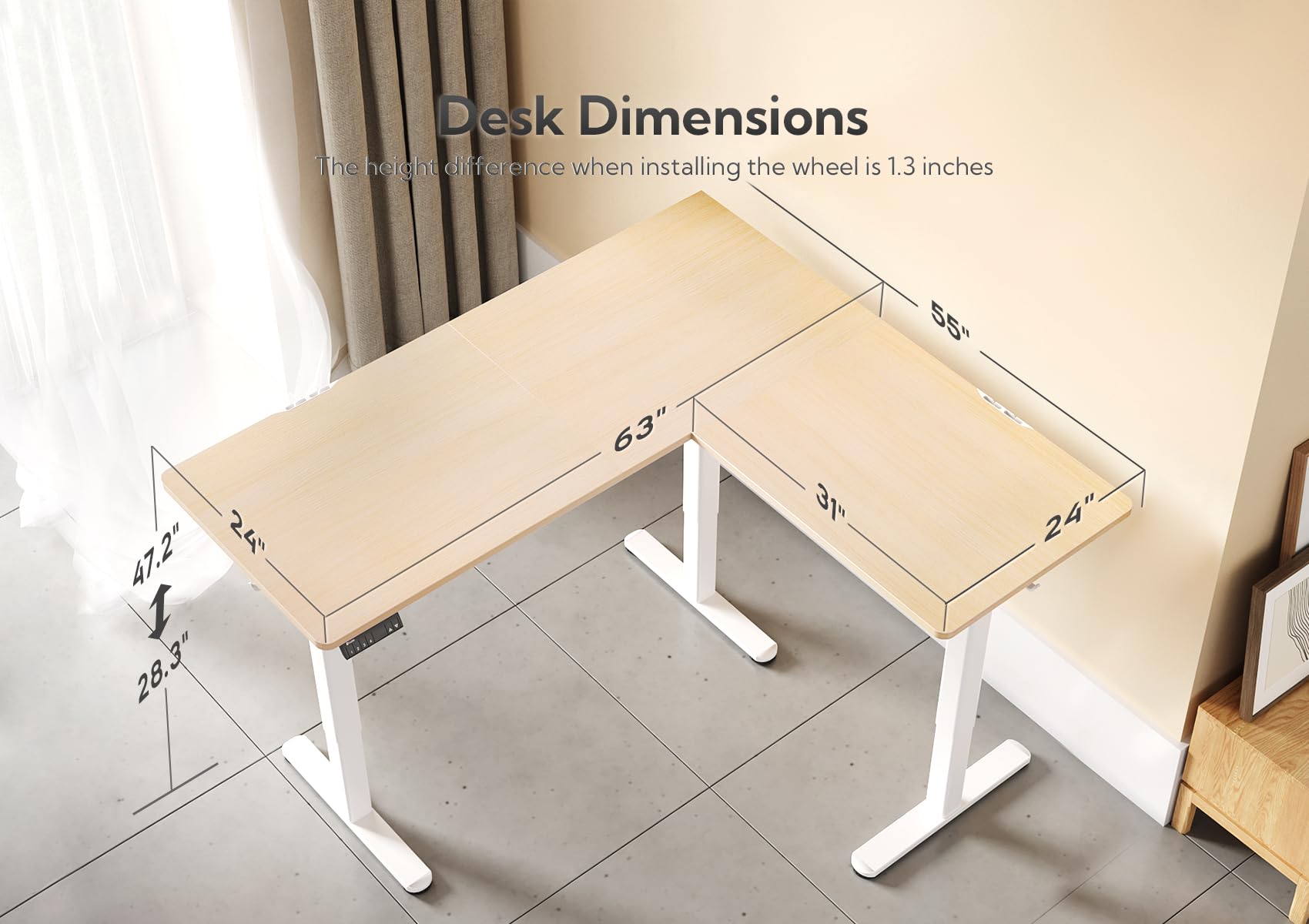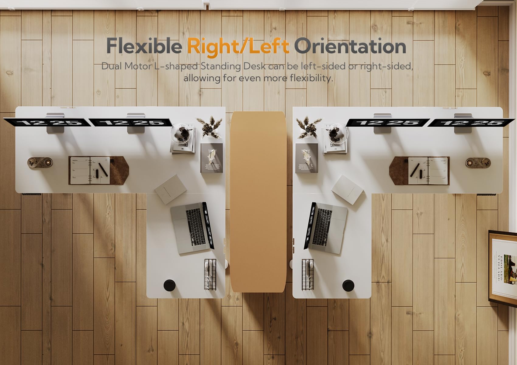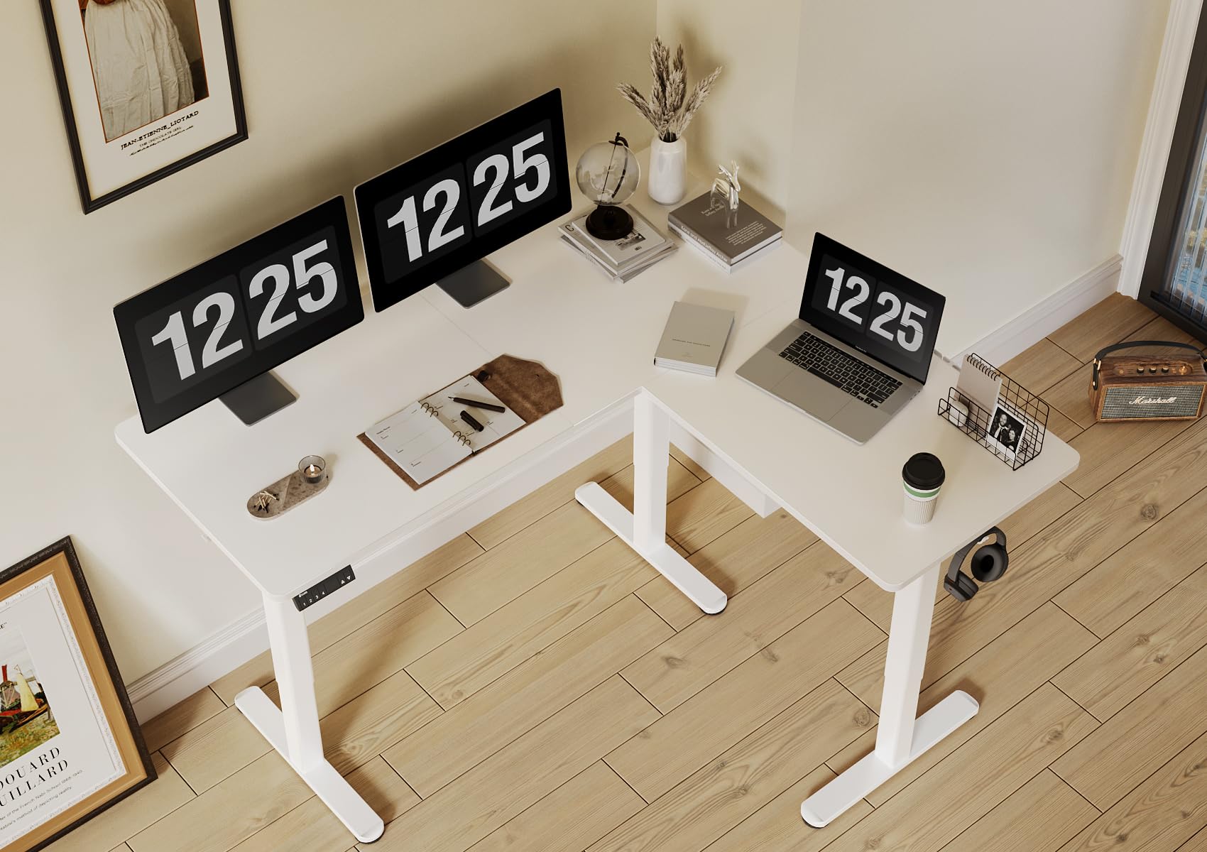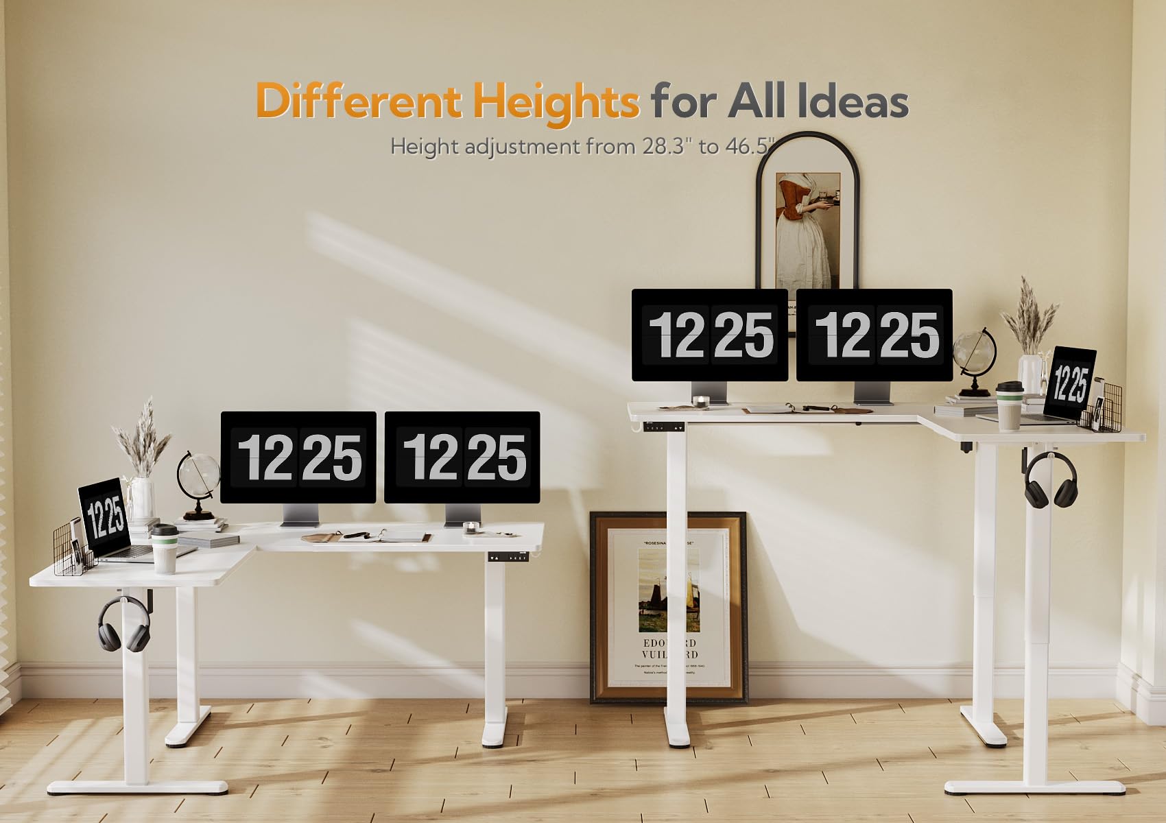 Claiks L Shaped Standing Desk Adjustable Height, Dual Motor Electric Corner Standing Desk, 63x55 inch Sit Stand up Desk with Splice Board, White