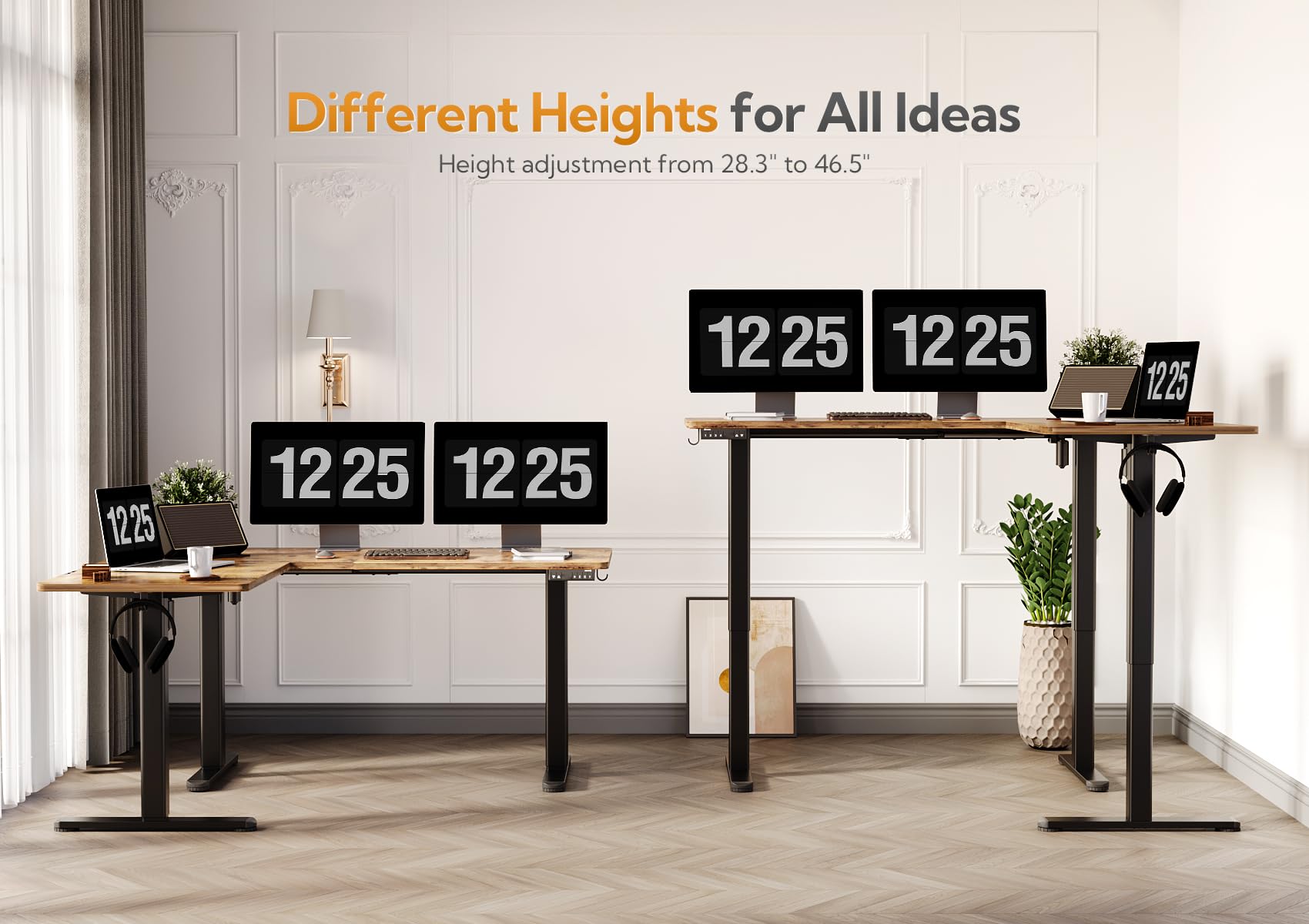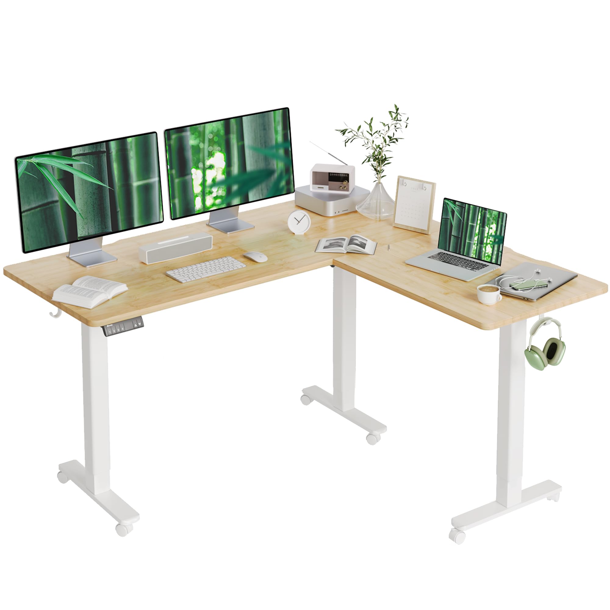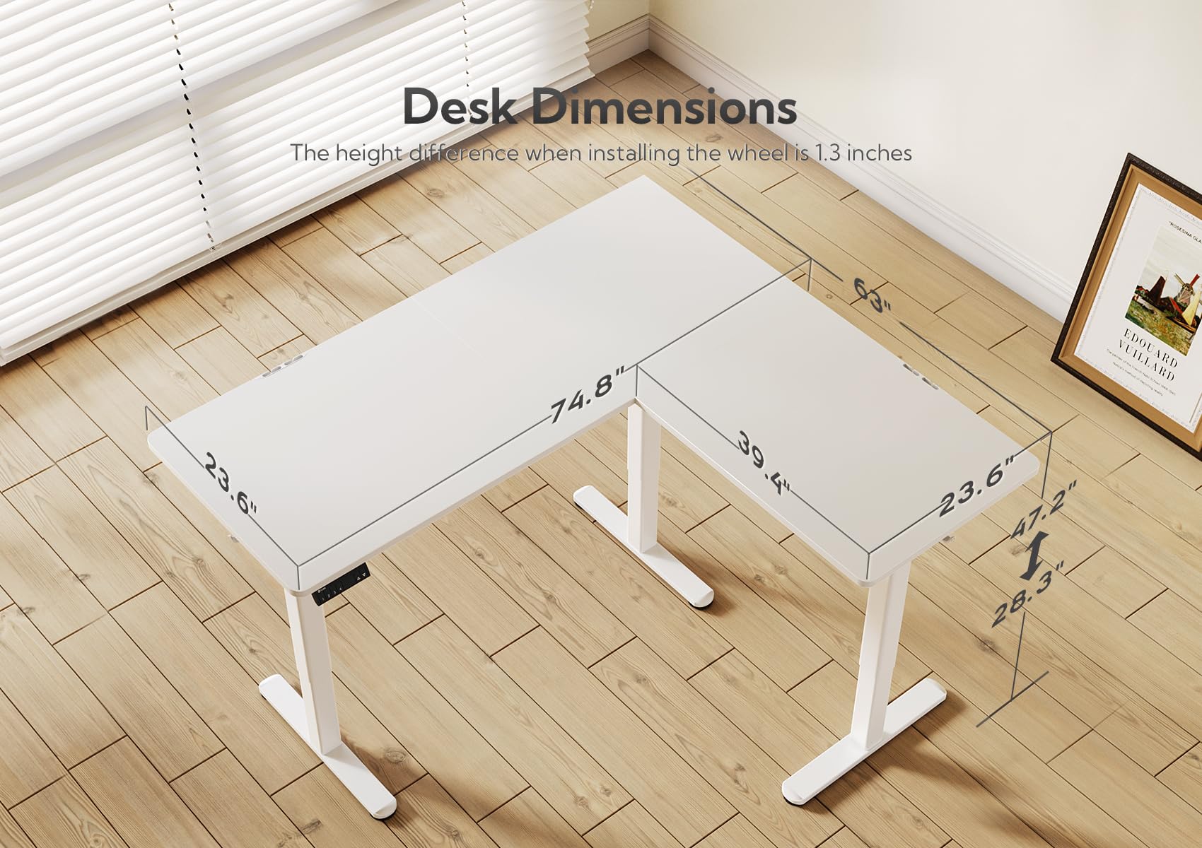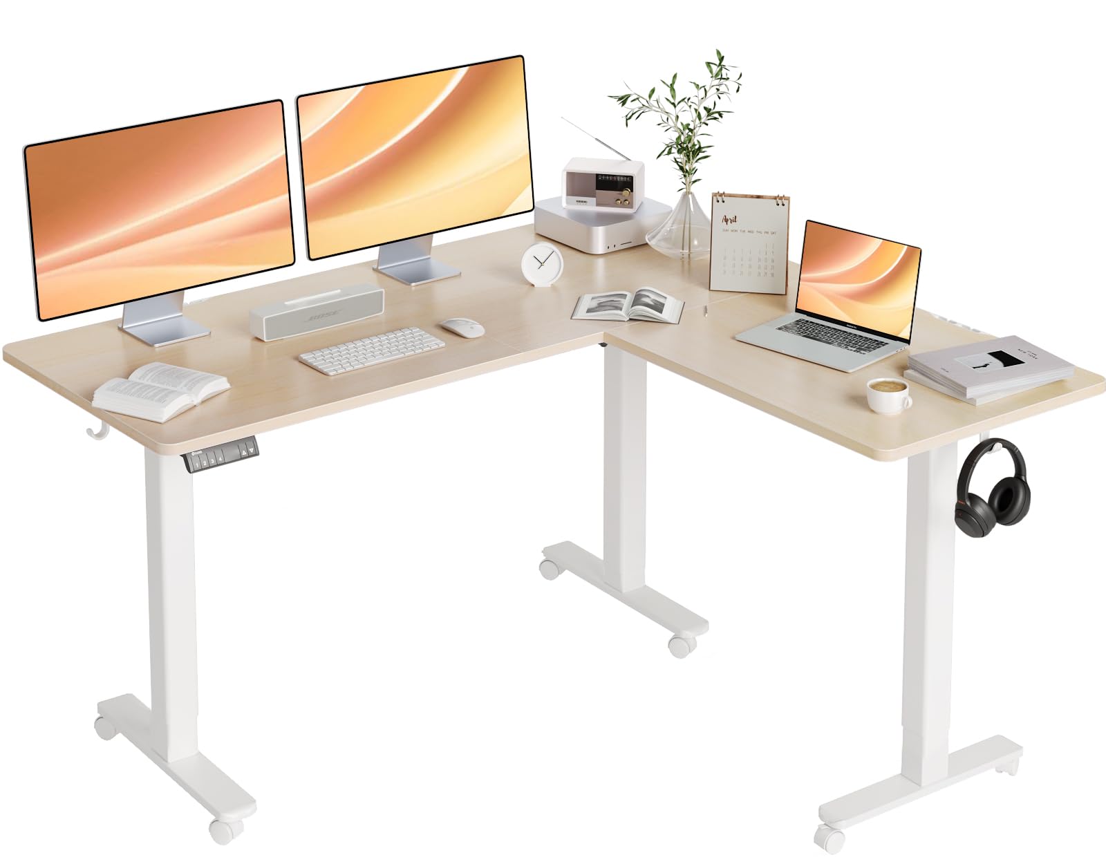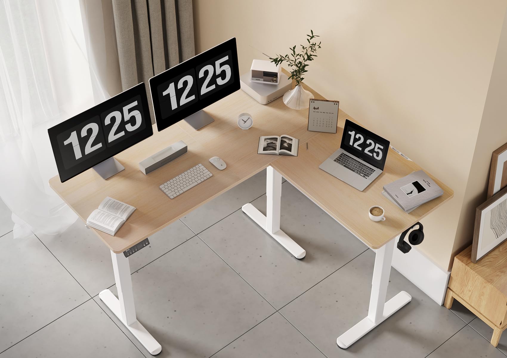 Claiks L Shaped Standing Desk Adjustable Height, Dual Motor Electric Corner Standing Desk, 63x55 inch Sit Stand up Desk with Splice Board, White