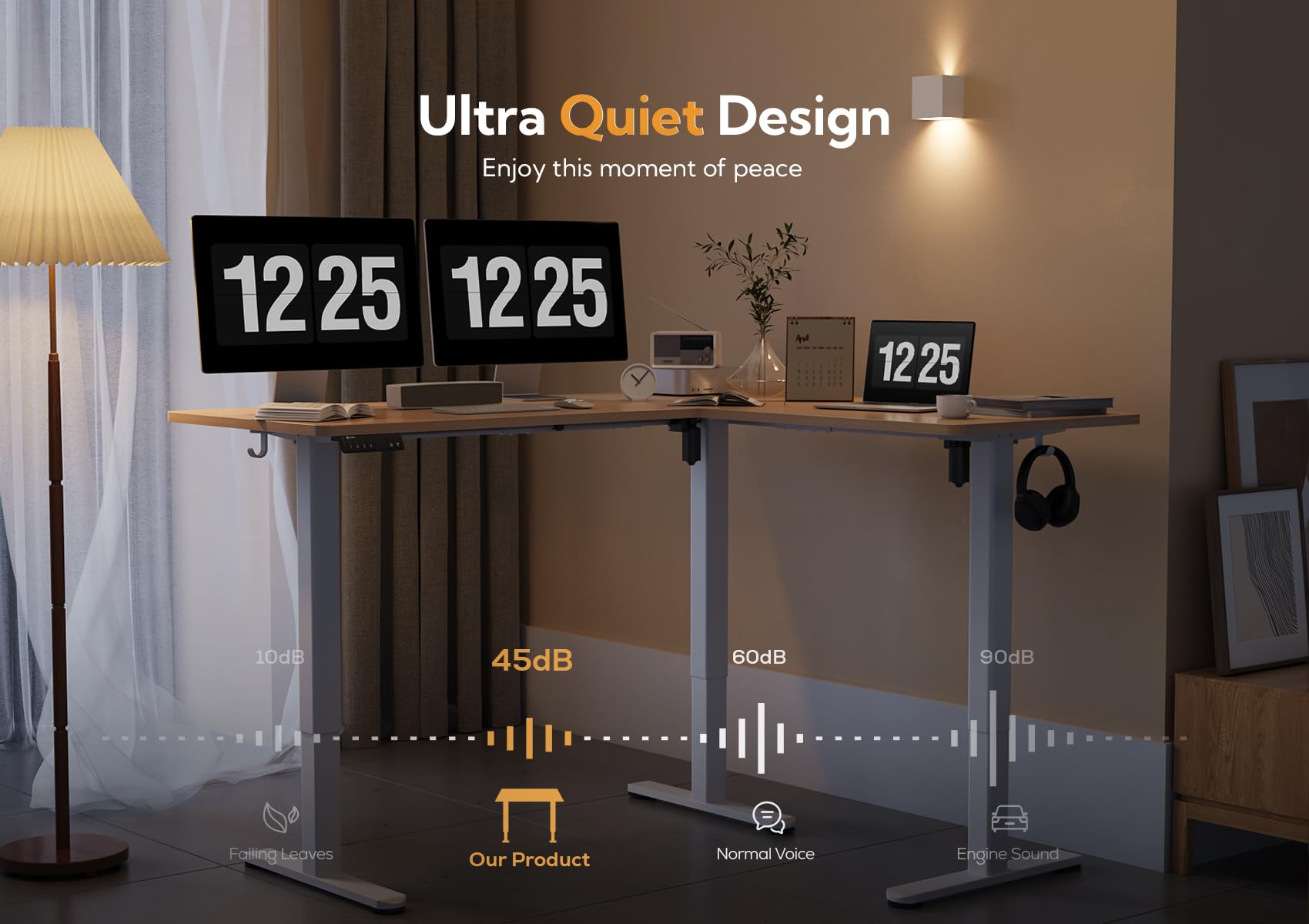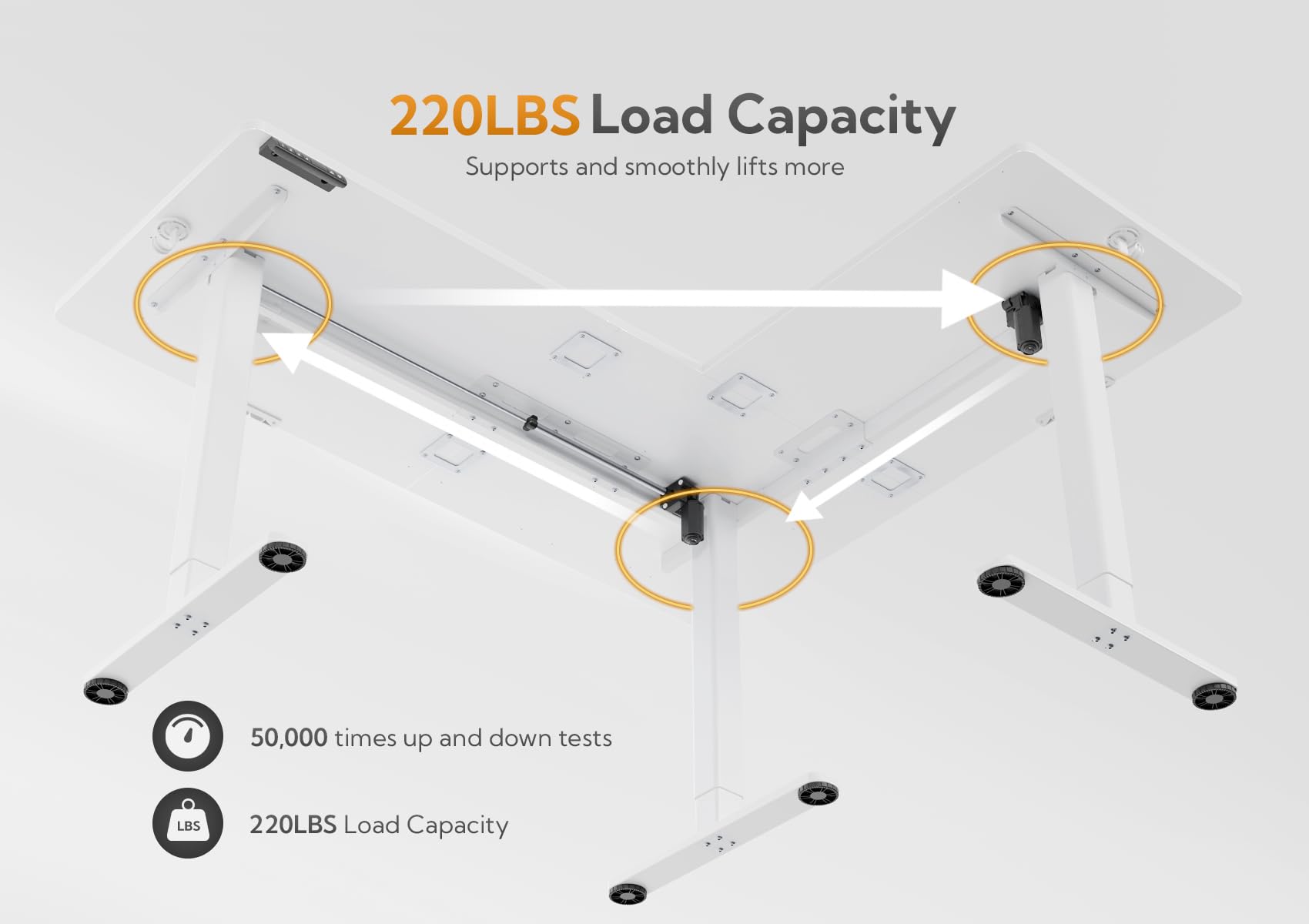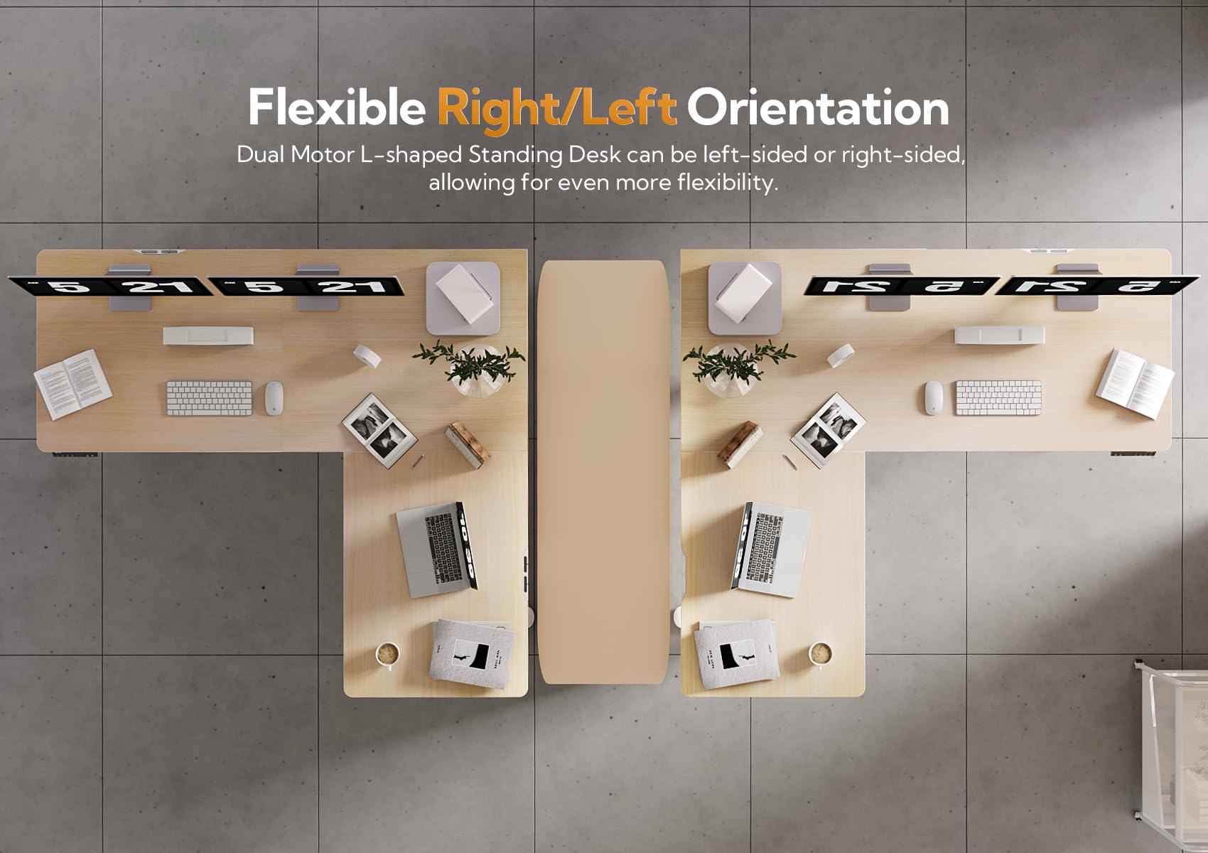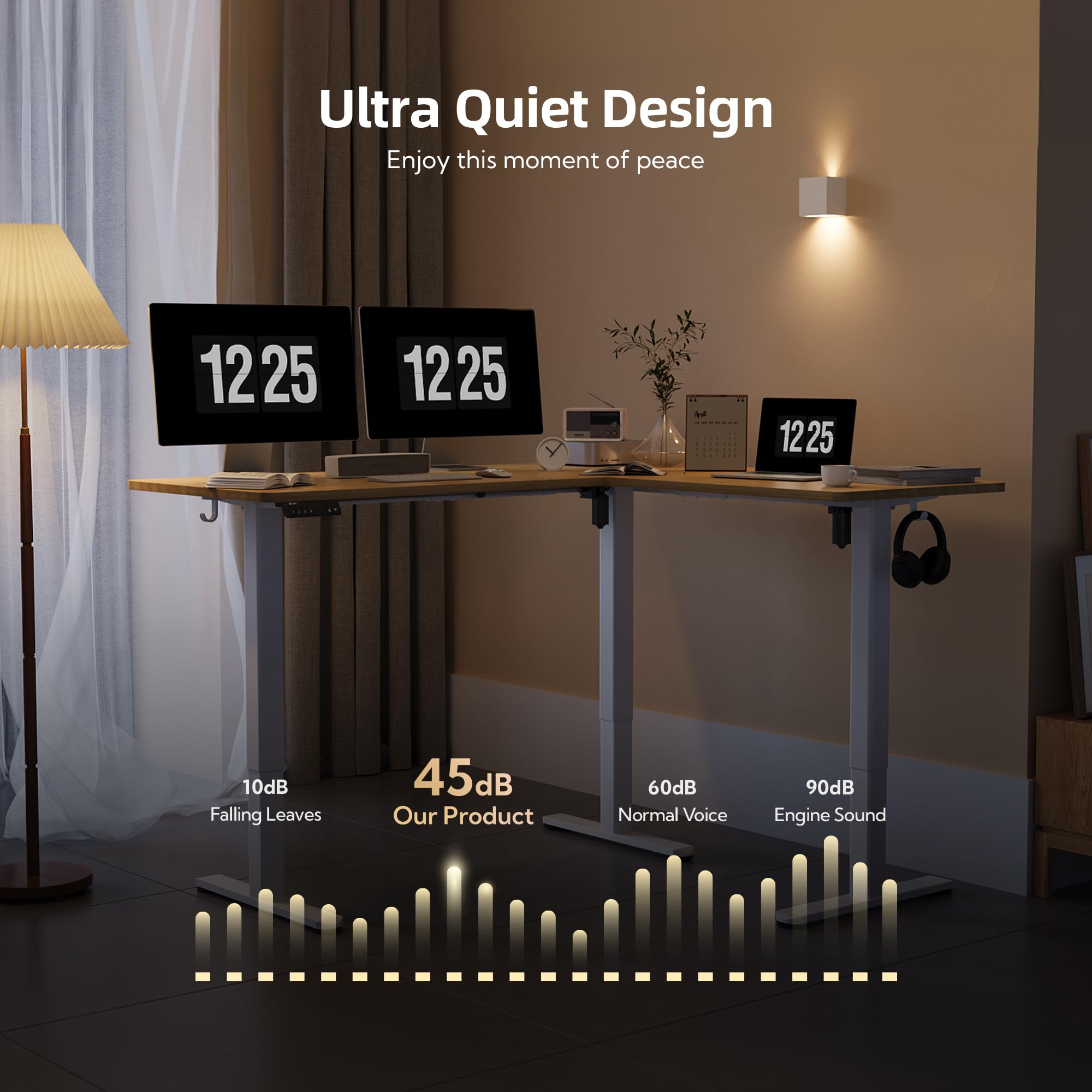 Claiks L Shaped Standing Desk Adjustable Height, Dual Motor Electric Corner Standing Desk, 63x55 inch Sit Stand up Desk with Splice Board, White