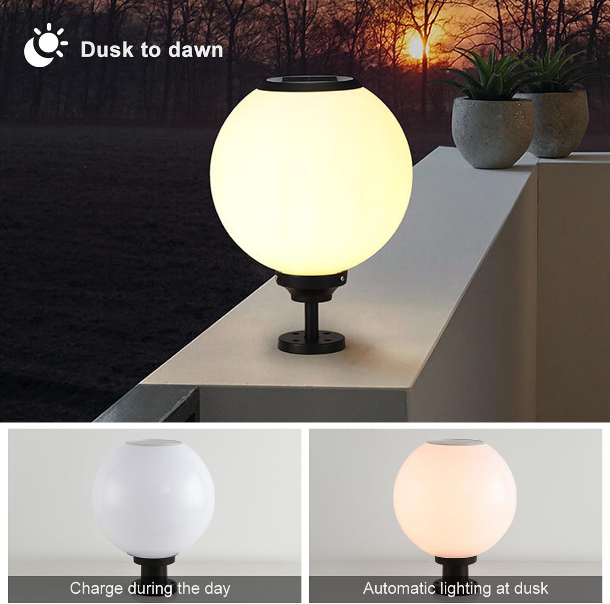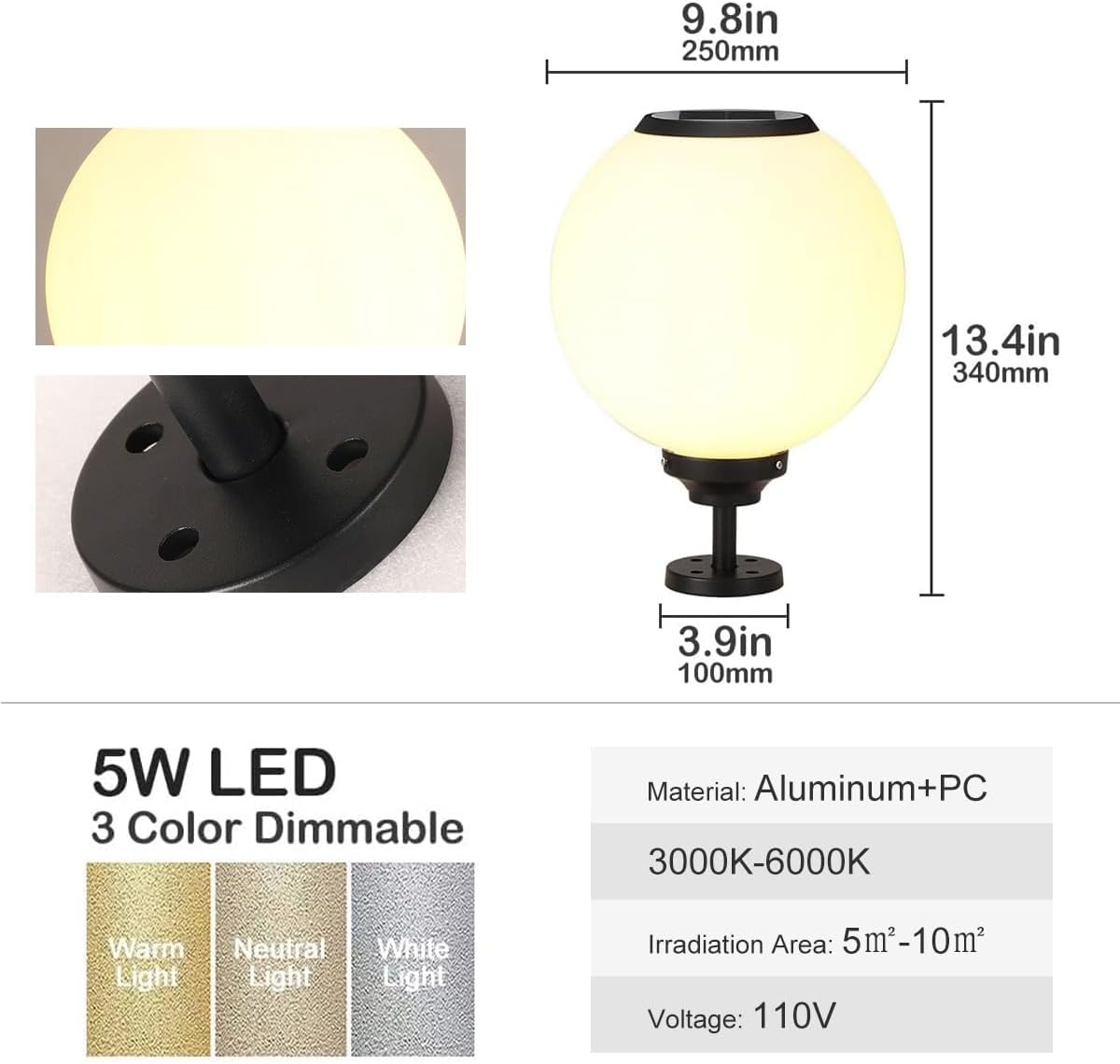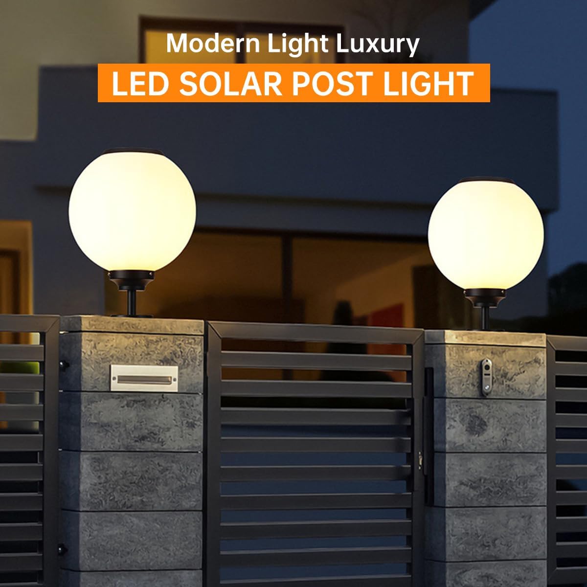 Solar Outdoor Column Lights - Aluminum Fence Pedestal Post Lamp Outdoor Vintage LED Globe Pillar Lights, IP65 Waterproof External Landscape Street Lighting Fixtures